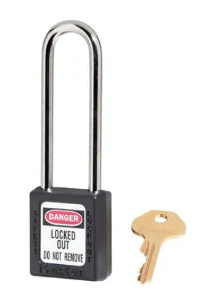 The Master Lock No. 410GRN Zenex™ Thermoplastic Safety Padlock features a 1-1/2in (38mm) wide plastic body and a 3in (76mm) tall, 1/4in (6mm) diameter metal shackle. Designed exclusively for Lockout/Tagout applications, the durable, lightweight, non-conductive lock body is easy to carry and padlock features high security, reserved-for-safety cylinder with key retaining, to ensure padlock is not left unlocked.
