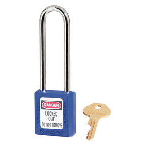 The Master Lock No. 410GRN Zenex™ Thermoplastic Safety Padlock features a 1-1/2in (38mm) wide plastic body and a 3in (76mm) tall, 1/4in (6mm) diameter metal shackle. Designed exclusively for Lockout/Tagout applications, the durable, lightweight, non-conductive lock body is easy to carry and padlock features high security, reserved-for-safety cylinder with key retaining, to ensure padlock is not left unlocked.